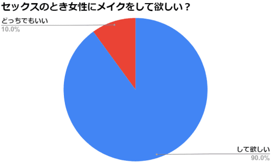 セックスのときにメイクをして欲しいと答えた人は9割!スッピンでセックスはやめてくれ~ということですね(笑)