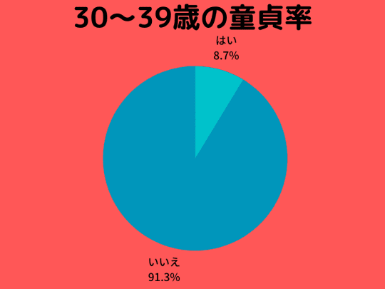 30代は、人口65万のうち「8.7%」の方が童貞と回答しています。20代から更に変化していますよね。