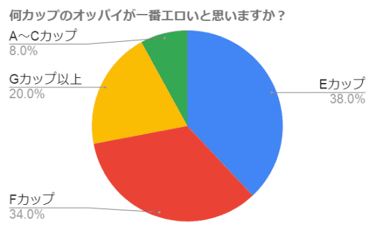 20代から40代の男性3000人にアンケートを実施した結果、 一番エロく思うオッパイはEカップ、Fカップが7割以上を占めました。