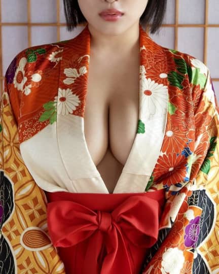 浴衣は襟元を詰めて着ますが、既製品の浴衣だと、どうしてもオッパイが大きいと胸元が開いてきます。エロいですね~♡