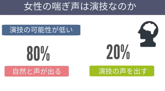女性はわざと大きなアクメ声をだし、周囲から得られる情報を遮断し自らが脳を騙しやすい環境を作り出しているためアクメ声が大きいそうです。
