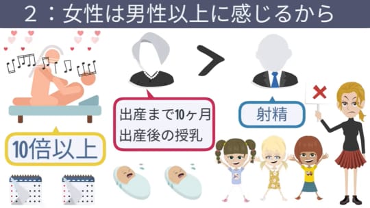 女性たちは、自分たちオスが自分に興奮してくれて射精つまり精子をくれてありがとうの意味を込めえてアクメ声を出している説があります。