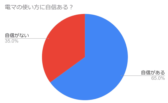 この画像は、Twitterにて集まってくれた20代~40代の男女100人に「電マの使い方に自信がある?」というアンケートの結果をまとめたものです。