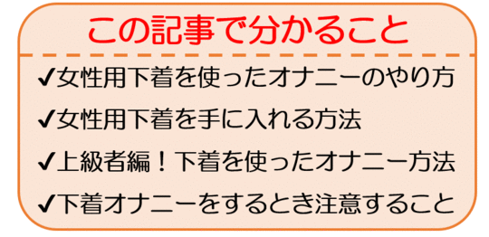 なので今回は、下着をつかったオナニーとはどういう方法なのか、下着オナニーを捗らせる方法、その注意点はなにかなどについて解説していこうと思います!