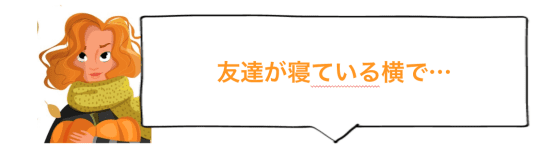 ①友達が寝ている横で…