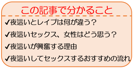 今回は、そんな夜這いセックスの酸いも甘いも知っている筆者が、魅力ややり方などを徹底解説していきます♡