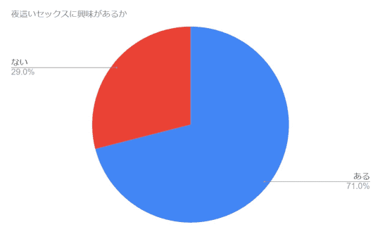この画像は、20代~30代の男女100人を対象に「夜這いセックスに興味があるか」というアンケート調査をTwitterにて行ったときの結果をグラフにしたものです。