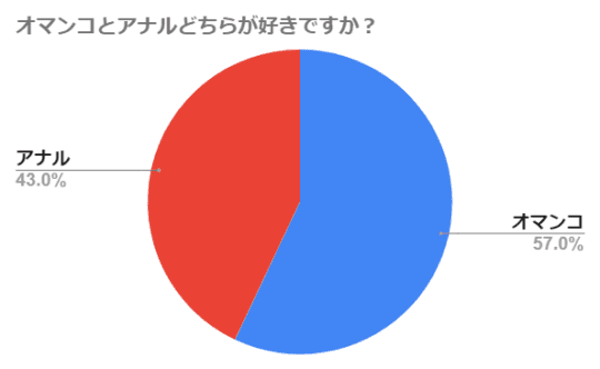 上記のグラフは男性100人に聞いた「オマンコとアナルどちらが好きか?」というアンケートを取った際の結果になります。