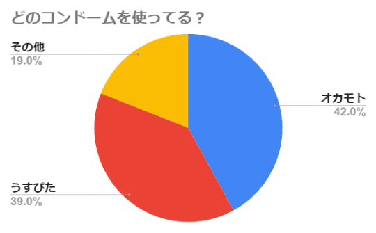 今回のアンケート結果ではやはりよく耳にするオカモトのコンドームを普段から使われている男性が多く、2番目にうすぴたを愛用されているという男性もいました!
