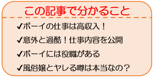 これまで説明してきたのは、あくまでも風俗のボーイのお仕事です。