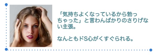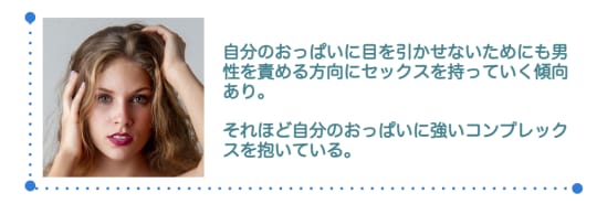 ただ計算高い女性は、自分のおっぱいに目を引かせないためにも男性を責める方向にセックスを持っていくんです。それほど自分のおっぱいに強いコンプレックスを抱いているのでしょう。