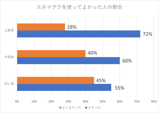 その結果、初心者・中級者・上級者の方それぞれ50%以上がよかったと回答しています。
