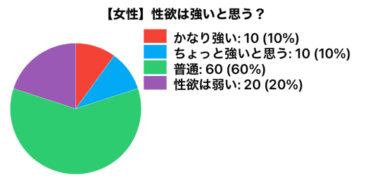 一番多かったのが、「普通」という結果でした。普通と答えた女性と、性欲が弱いと答えた人が全体の8割ととても多いです。