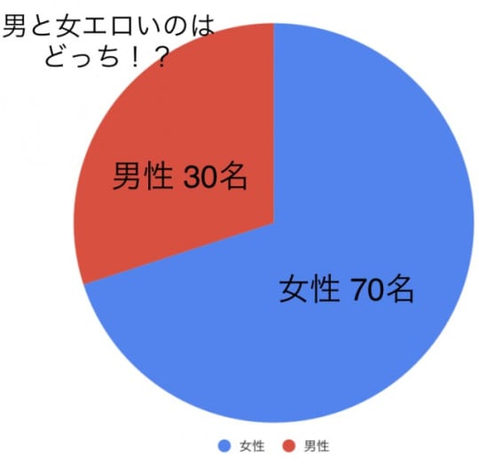 女性の方がエロいと思うが70人、男性の方がエロいと思うが30名でした!