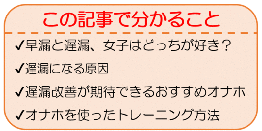 遅漏改善トレーニングをした事がある男性に聞いたところ、オナホを使ってのオナニーは遅漏改善に効果的なのだそうです!