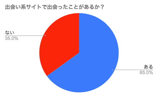 このグラフを見ると出会い系アプリで出会った人は、全体の65%にも上ります。