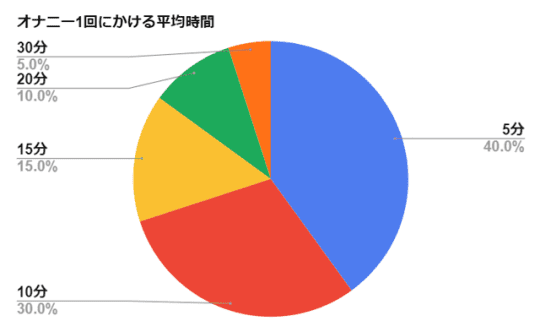 まずは平均的なオナニーの時間ですが、100人中40人が「オナニーにかける時間は5分」と答えてくれました。
