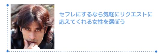 僕は乳首を責めながらフェラしてくれる女性が好きなので(笑)、セフレにするなら「リクエストに応えてくれる」女性を選びます。