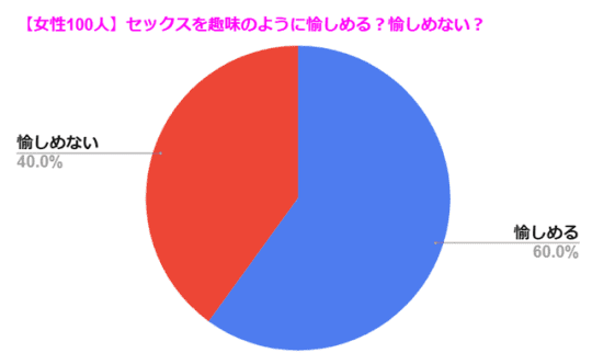 そこで、今回僕の女友達100人にこっそりと「セックスを趣味のように愉しめる?愉しめない?」をリサーチ!