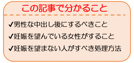 もちろん、妊娠を望んだ中出しなのかそうでない場合の中出しなのか、はたまた男女によっても処理の方法は違います。