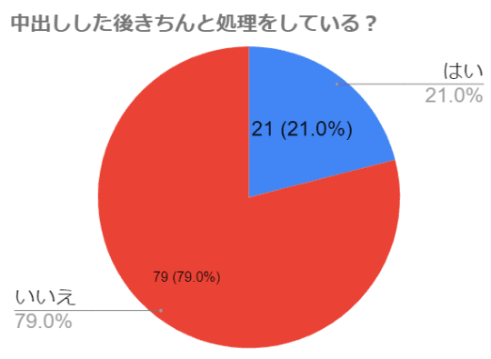 中出し後のきちんとした処理をしているのは、全体の2割しか行っていないことが分かります。