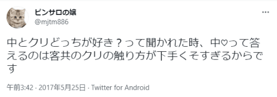 「あ〜知ってるよ。指でギターを弾く様に触るんだ。ほら、こんな感じでね〜‼︎(しゃかしゃか‼︎)BPMは150くらいかな。俺の彼女はもうさ、これで発狂しちゃ」