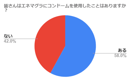 上記のグラフはエネマグラを愛用している男性100人に聞いた「あなたはエネマグラにコンドームを使ったことがありますか?」というアンケートを取った際の結果になります。