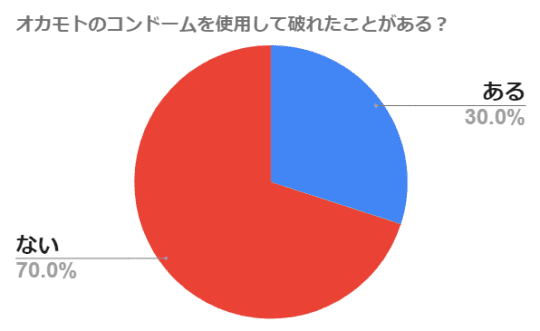 上記のアンケートは一般の男性100人の方に実際にオカモトのコンドームを使用して破れたかを調査したものになります!