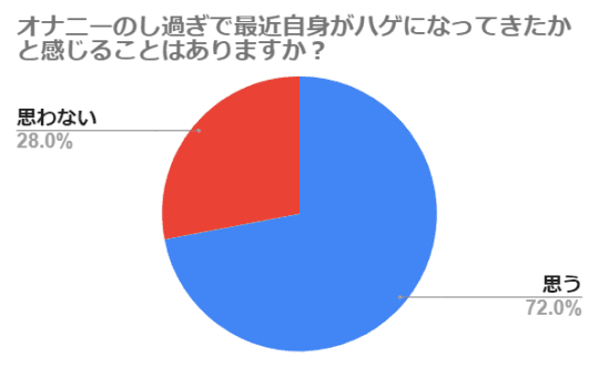 以外にも半数以上の方がオナニーのし過ぎでハゲになってきたという実感を得ているそうです。
