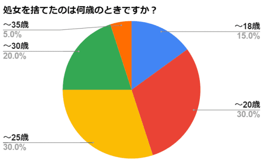 20歳くらいまでが多いのかなと思いきや、20歳以上で処女を捨てたという女性も結構いますね。