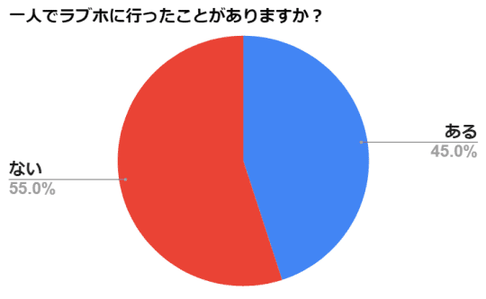 なんと45%もの人が一人でラブホを利用したことがあると回答!日頃からみなさん一人ラブホを満喫しているようですね。