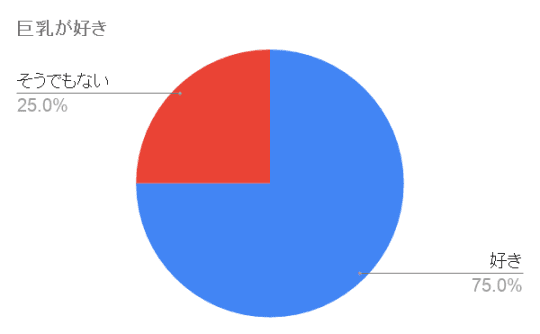なお、男性が巨乳好きかどうかについて、渋谷で10代~30代の男性100人に調査を実施したところ、こんな結果が出ています。