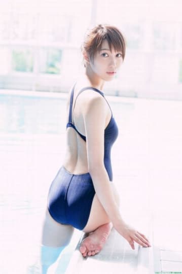 「競泳水着」っぽいものを纏った「東雲うみ」を後ろ側から撮った画像であるわけですが、やっぱりその「美尻」には注目せざるを得ませんね!
