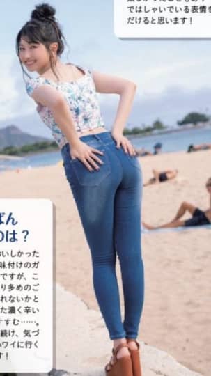 「ジーンズ」に「スポーツブラ」という格好の「今田美桜」を後ろ側から撮ったショットです。