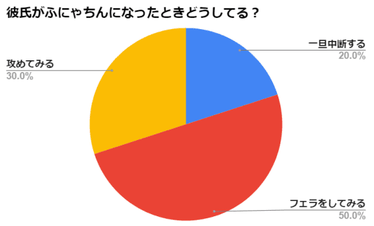 彼氏がふにゃちんになったとき、みんなどのように対応しているのでしょうか?20歳~30歳までの彼氏がいる女性100人にインターネット上でアンケートを取ってみました。