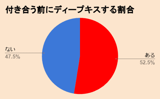 上記で半数の人が、付き合う前にディープキスすることが分かりました。