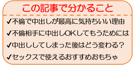 しかも不倫となれば尚更、聞きにくいものです。中出しすれば妊娠の可能性があるので怖い面もありますが、相手の温もりを体内で感じることができお互いにとって気持ちがイイもの。