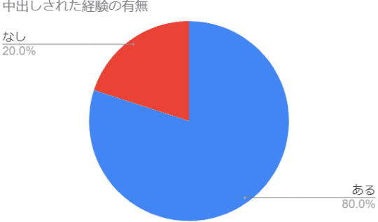 上記の調査は、あるコンドームメーカ―が女性100人を対象に行った結果をまとめたものです。約8割以上の女性が中出しをされた経験があると言っています!(筆者もその中の一人ですが…)中出しは気持ちが良い反面、妊娠というリスクがあるので、二人の未来を考えたうえで実行したいですね!
