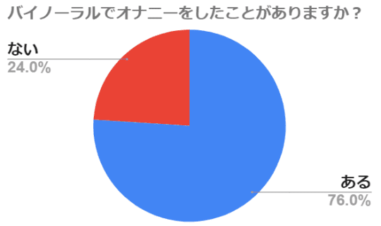 上記のグラフはオナニーが趣味の男性100人にバイノーラル音声を使ったことがあるか?というアンケートを取った際の結果になります。