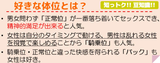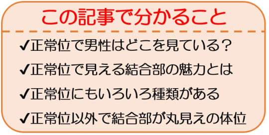 正常位以外にももっとエッチな結合部を楽しめる体位を紹介します。