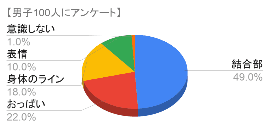 約半数の男性が結合部と回答。正常位なら結合部を見ないでどうするよ。と。