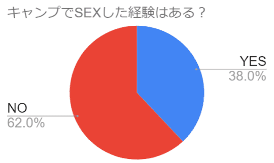 アンケートの結果、キャンプに行って、セックスしたことがあると答えた人は38%。