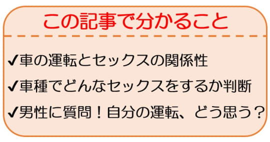 ここからは早速車の運転とセックスの共通点についてまとめていきますね!