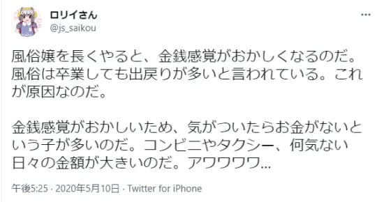 私も風俗嬢を始めたころ店長に「この業界は金銭感覚がおかしくなって辞めていく女の子が多いから気をつけてね」と言われたんですよ。