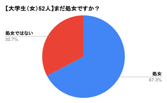 僕がリサーチをしたところ、実は大学生の処女率が高いことが判明しました。