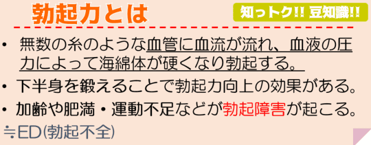 先ほどの性交痛ではないですが、男性では勃起不全、そしてセックスをする為の柔軟性が衰えてきます。