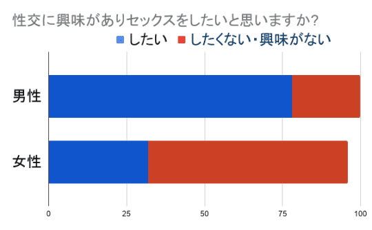 対して女性の割合は、セックスを希望しているのは30パーセント未満です。