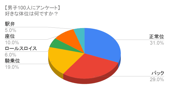 若者(10~30代中心)男性100人に対して、後背位の人気度を調べるために足を動かしました。