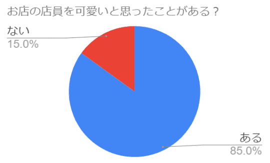 上記はSNSを用いて20代男性100人にアンケートを取った結果ですが、やはり店員さんのことを可愛いと思ったことのある男性は多いようです。