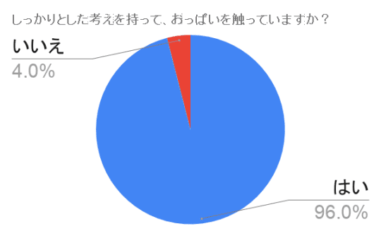 なんと、96%の男性が「しっかりとした考えがあっておっぱいを触っている」と回答しています。